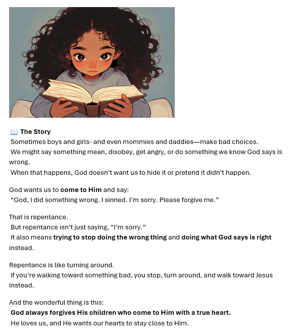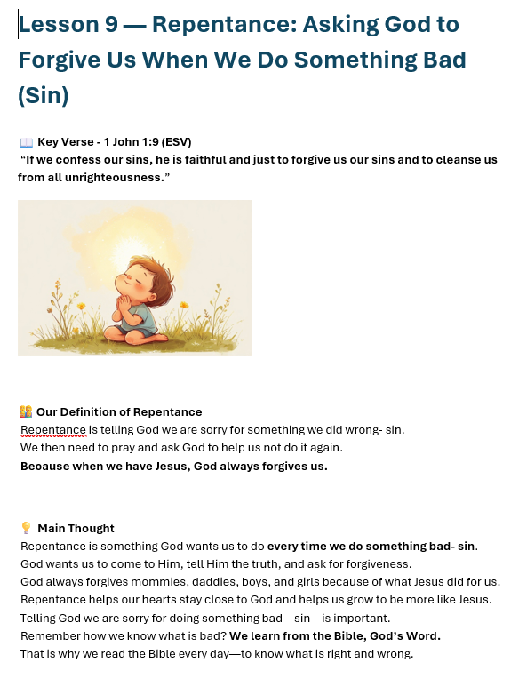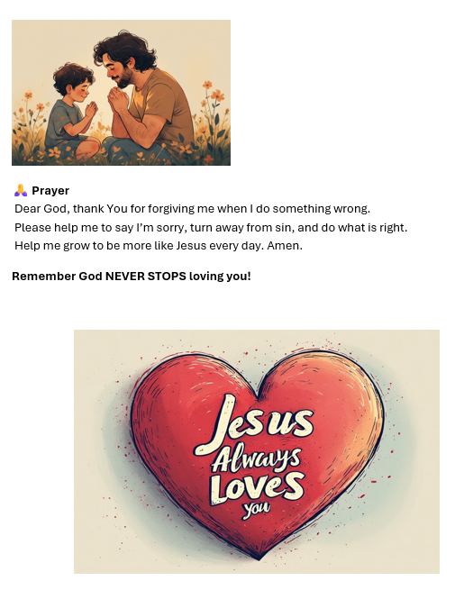 “In the Bible, God tells us that our sins — the bad things we do — separate us from our loving God and make Him sad that we haven’t obeyed.”