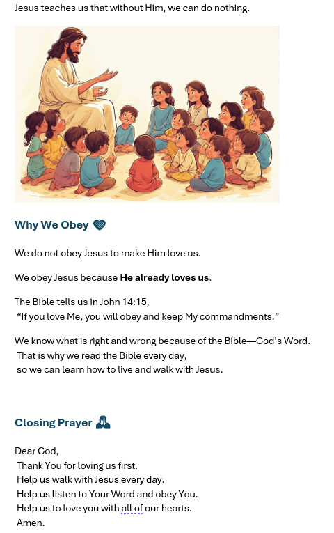 So far, we have walked through the essentials of becoming a Christian and the foundational truths that shape our new life in Christ: the importance of the Holy Word, abiding in the Word, meditating, memorizing, and studying Scripture, prayer, fellowship, and worship. We have seen that worship is not merely singing songs or playing instruments in church. While those things are good and pleasing, they are only a small part of true worship. Real worship is how we live every day-our obedience to God’ s Word.